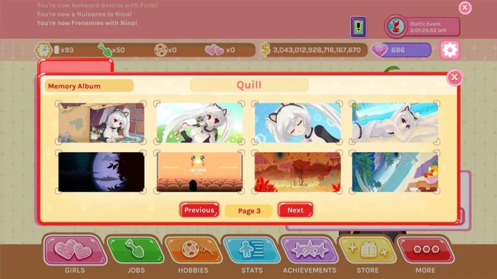 * Balance is Key: Don’t put all blocks on dates. Keep your economy (jobs) and stats (hobbies) growing to unlock more content.